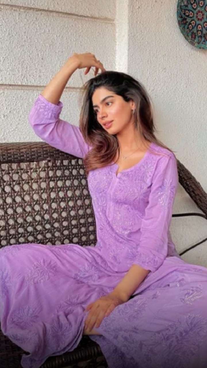 Gen-Z actress stole the spotlight in a comfy purple chikankari suit set. The look is apt to slay like a diva at the low-key Raksha Bandhan celebrations.