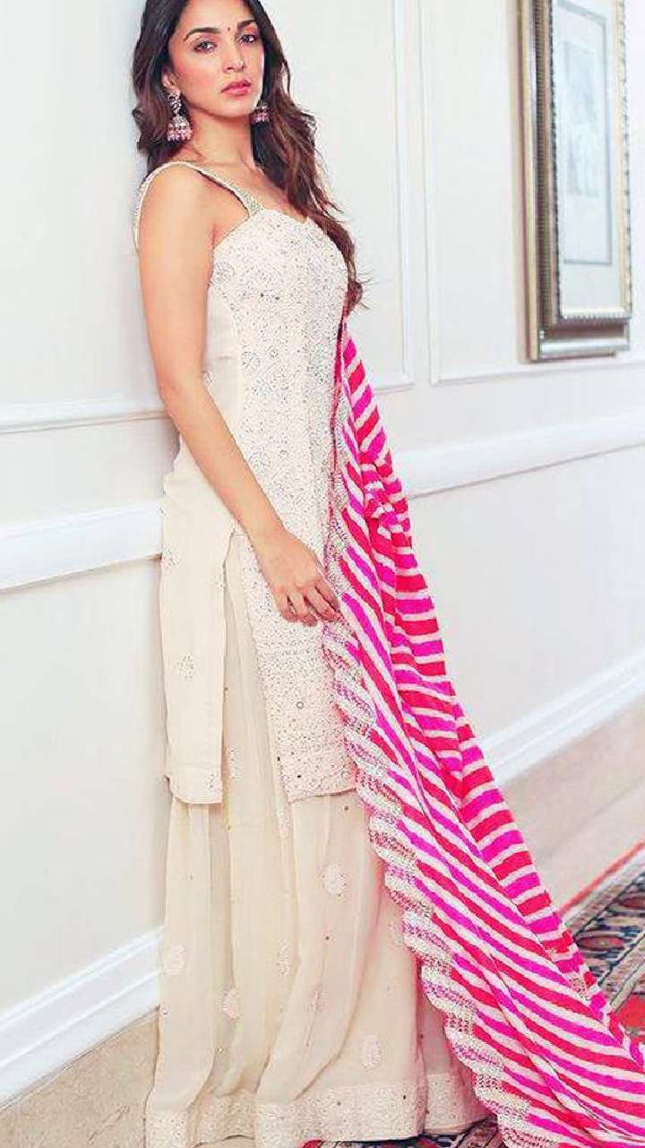 Kiara Advani exuded grace in a white sharara suit paired with a vibrant contrast dupatta. You can opt for green or orange dupatta tu embrace patriotic vibes.