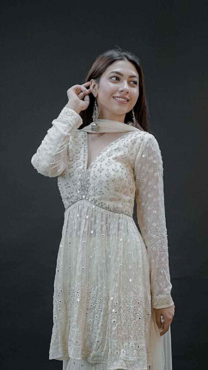 Chikankari-work is in a lot of trends lately, therefore, opt for a all-white, collared, two-piece chikankari suit set to channel inner Bollywood diva.