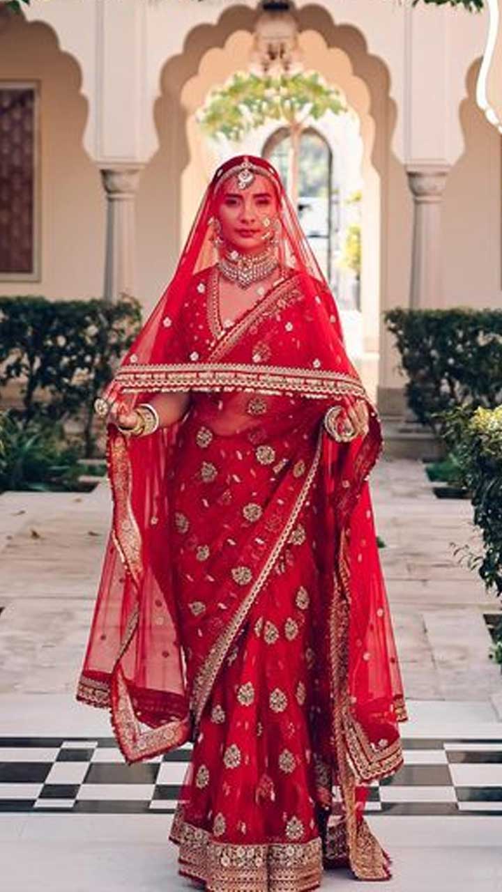 Patralekha married Rajkumar Rao in 2021 and wore a red Sabyasachi saree with a red dupatta as a veil. She declared her love for her husband through her veil.