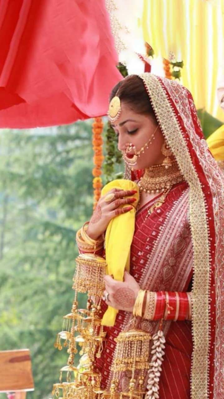 Yami Gautam chose to wear her mother's 33 year old silk saree for her wedding. She completed the look with a matching red veil gifted by her grandmother.