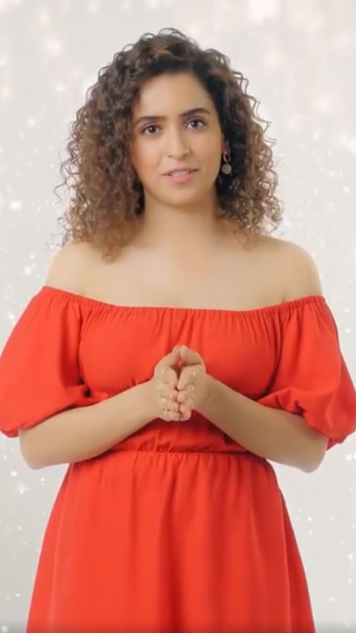 Sanya Malhotra wore an off-shoulder red dress for a video shoot. She kept the jewellery minimum to statement earrings and opted for pink-toned makeup to complete the look.