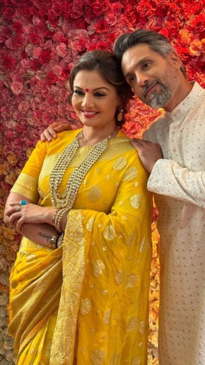 Nagpal posed with her co-actor Mohammed Iqbal Khan wearing a yellow saree. She completed the look with a bun hairdo and a layered necklace.
