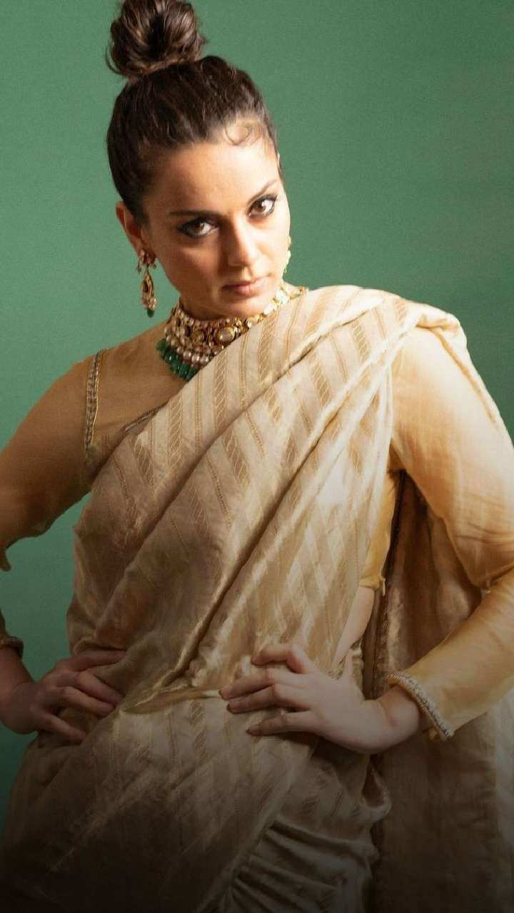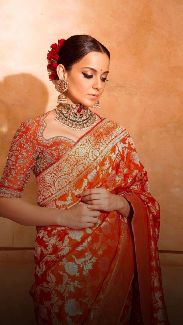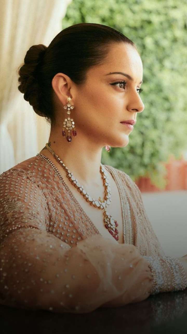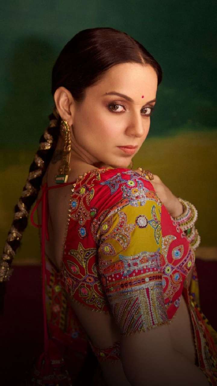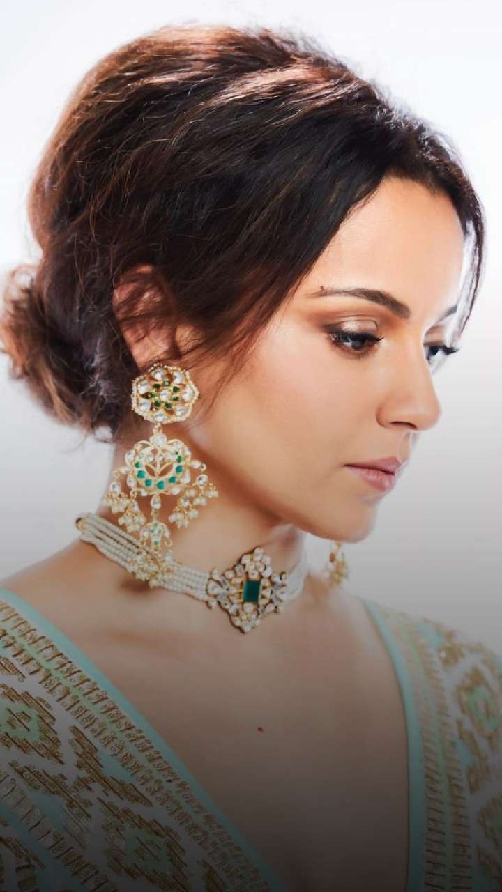 Kangana went for a centre-sorted braided ponytail that is perfect with a traditional look.