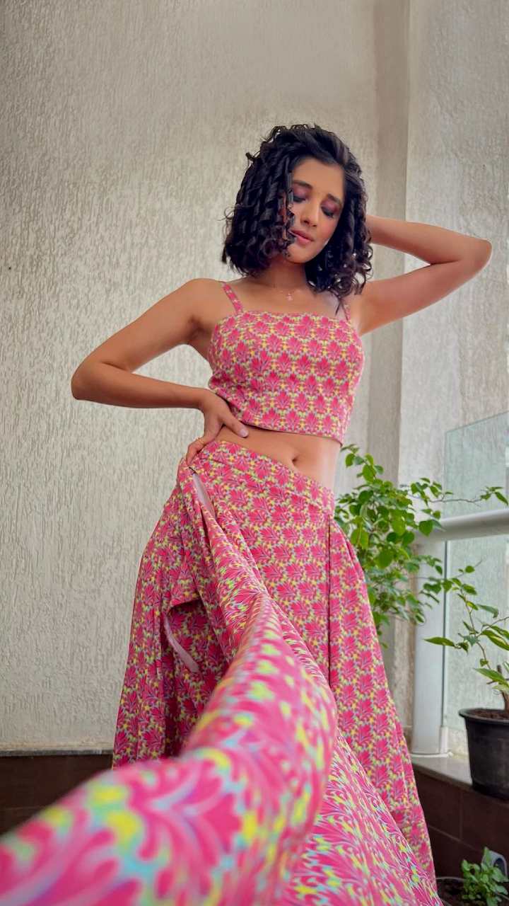 Kanika looks cute in this pink ruched co-ord set. She completed her look with red strappy heels and minimal makeup.
