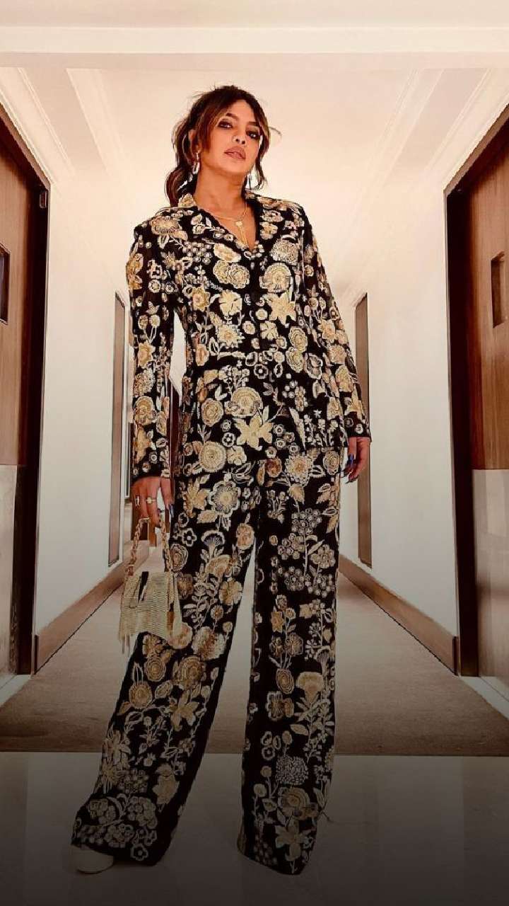 Well, co-ord sets are trending these days. This outfit is perfect for a cosy winter dinner with your partner. Priyanka looked ravishing in this look.