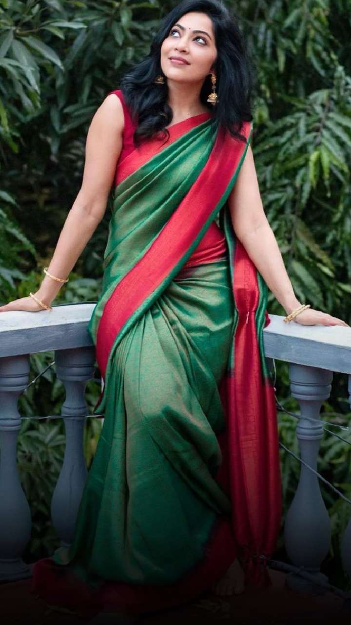Ramya Subramanian is a fitness enthusiast. She indulges in regular workout and yoga sessions to stay fit. Additionally, Ramya practised Silambam (a martial art from Tamil Nadu) during the lockdown. Apart from being a fitness freak, she is also a fashionista. Tap to see her saree looks.