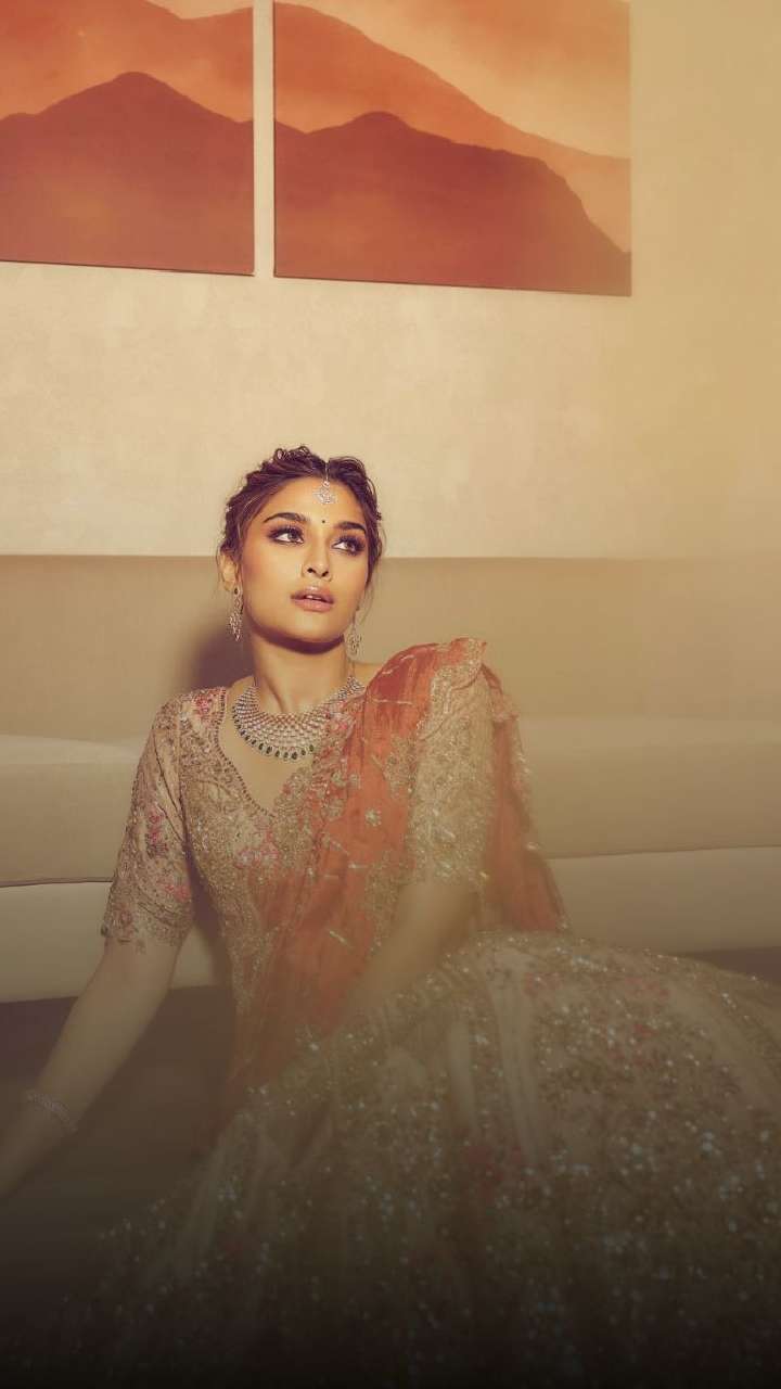 Saiee truly aced this ethnic look of hers. If you are someone who likes to keep your look minimal yet trendy, then these golden jhumkas are the ones for you.