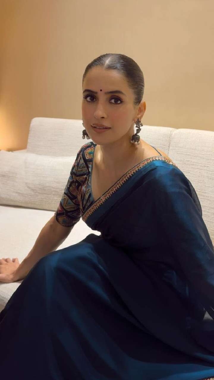 Sanya’s kohl-rimmed eyes exuded a dramatic allure that can work so well when you want to emphasise your eye makeup. Apply a nude lip shade to seal the ethnic glam.
