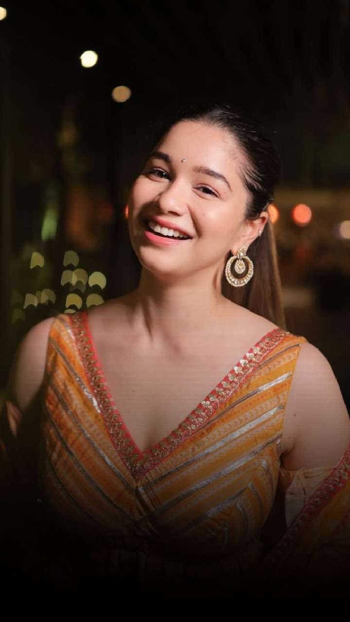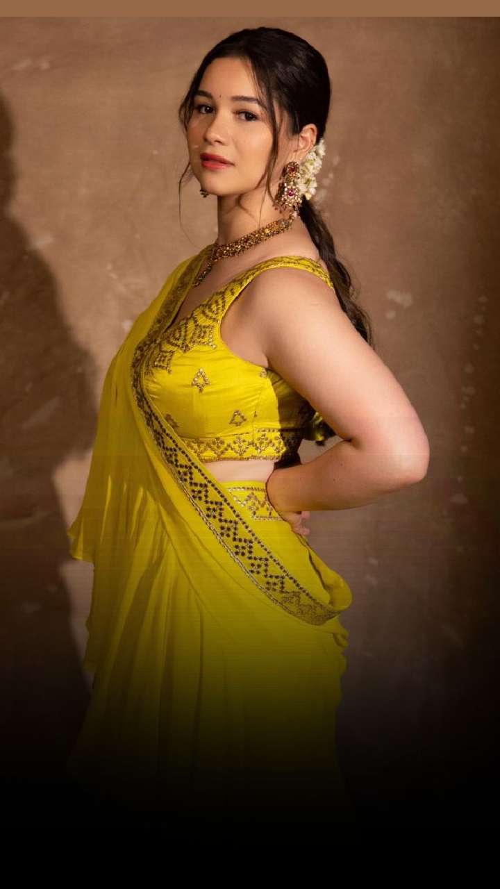 Sara looked like a vision in a yellow ruffle pre-draped saree teamed with a matching embroidered sleeveless tassel blouse. Her gajra-adorned mane and golden jewellery elevated her look.