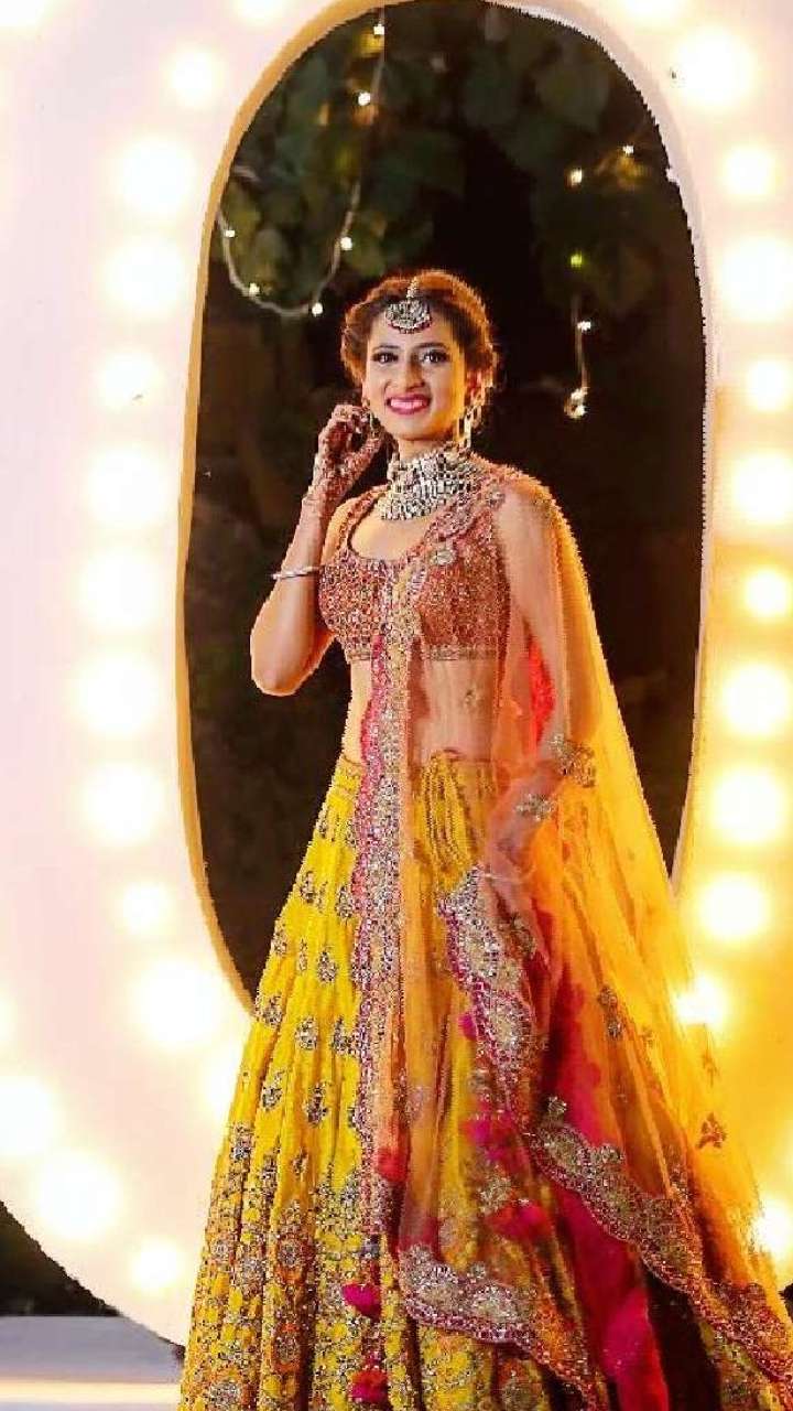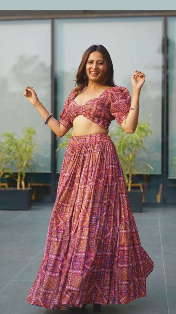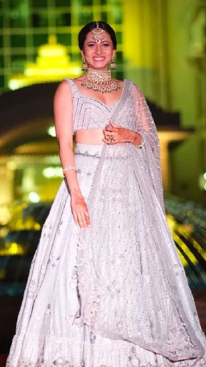 Sargun turned up the heat in her traditional lehenga look. She wore a halter-neck shimmery blouse and completed her look with nude makeup.