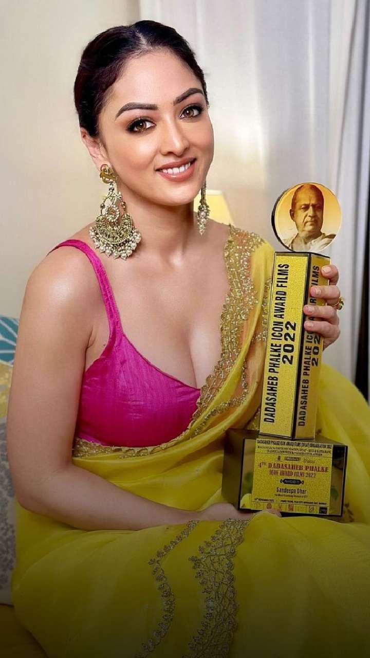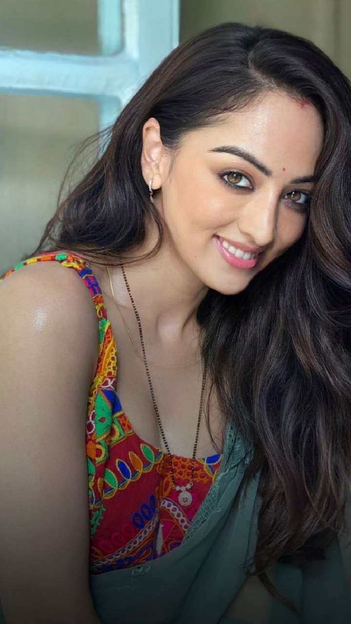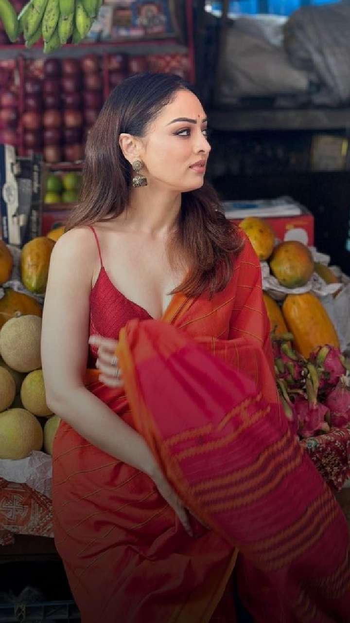 Sandeepa exuded elegance as she donned this yellow saree with a contrasting blouse design that comes with a spaghetti strap. She looked pretty in this look.