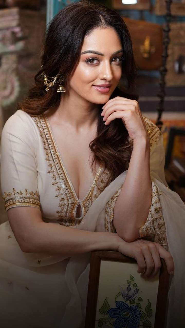 Well, you can also go for this sleeveless embroidered blouse design for the wedding just like Sandeepa.