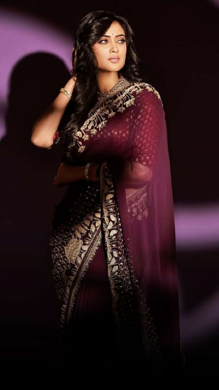 ‘Kasautii Zindagii Kay’ actress looked regal in a golden embroidered plum saree paired with a matching round-neck blouse. She kept her makeup minimal for the look.