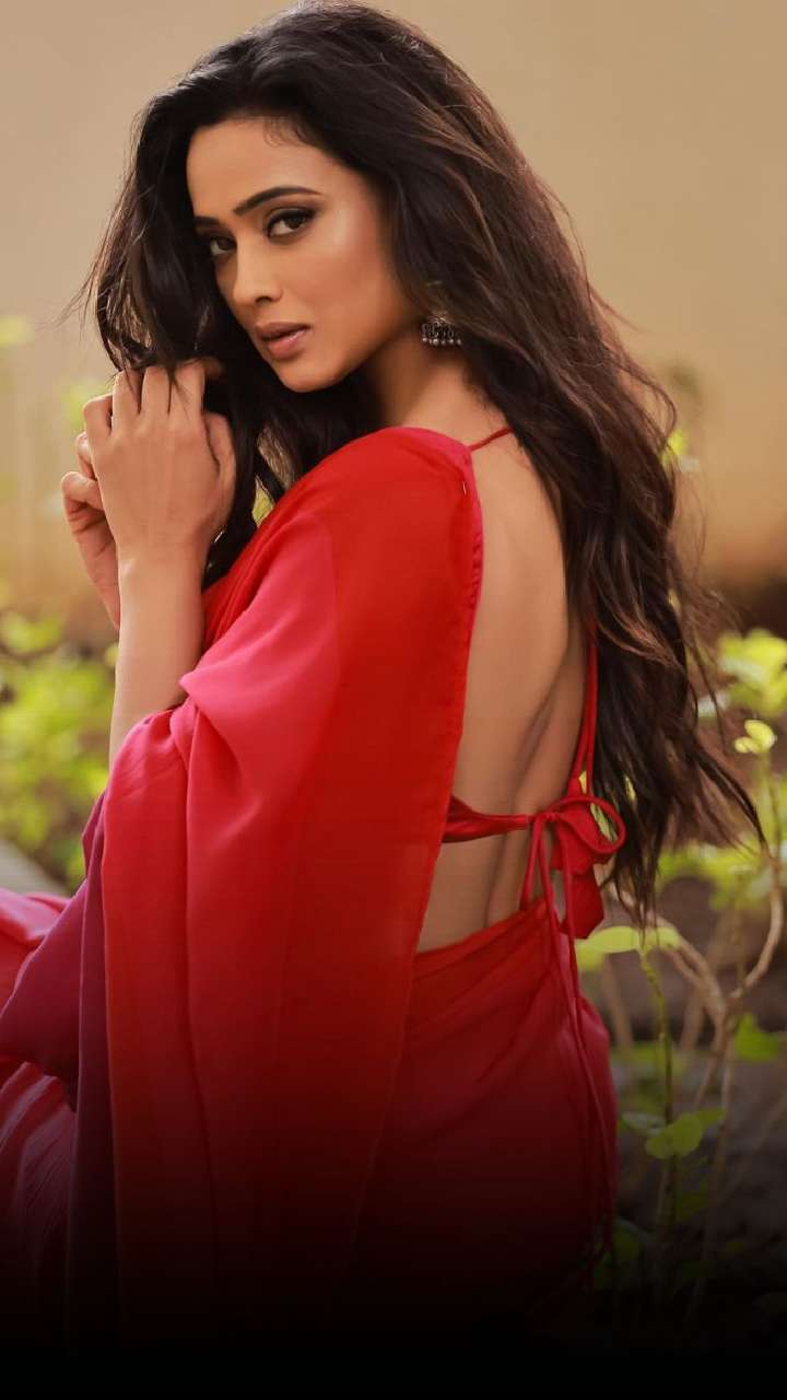 Shweta channelled her inner Bollywood diva in a red dori blouse teamed with a matching red flowy saree. She accessorised her look with oxidised jhumkas.