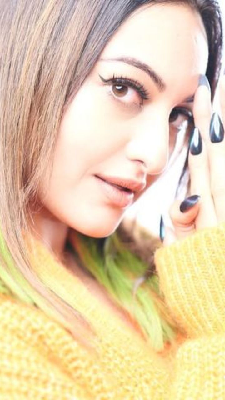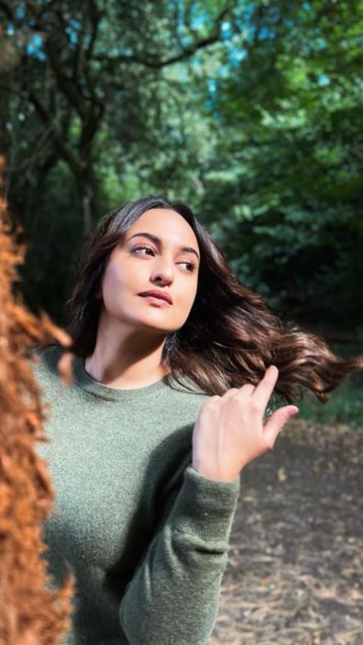 Sonakshi looked pretty wearing a green sweater top and chose minimal makeup and a middle-parted open hairdo to seal the look.