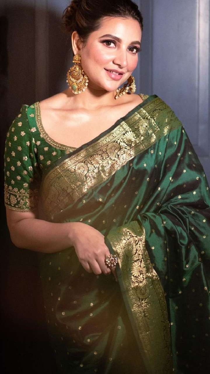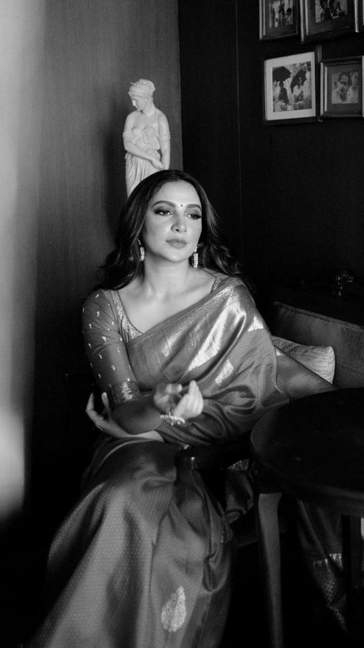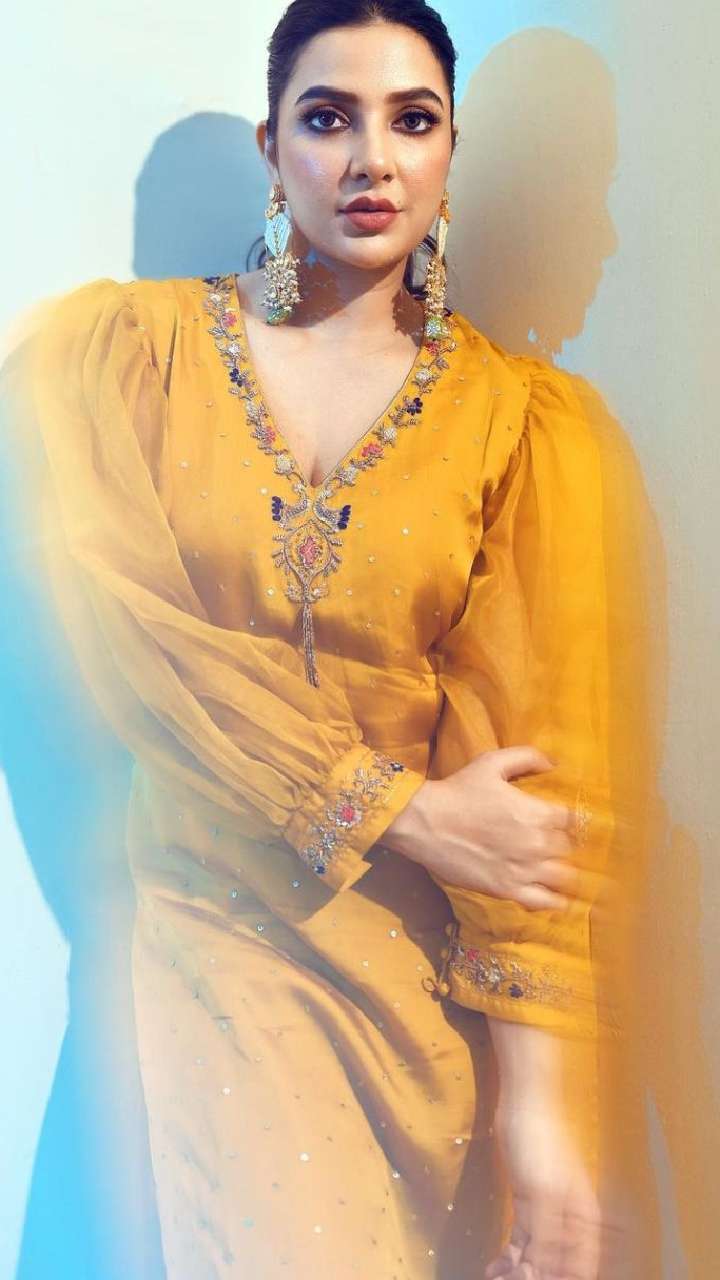 The Bengali beauty looked ravishing in this gotta patti puff sleeved kurta set. She completed the look with long earrings, rings and matching juttis.