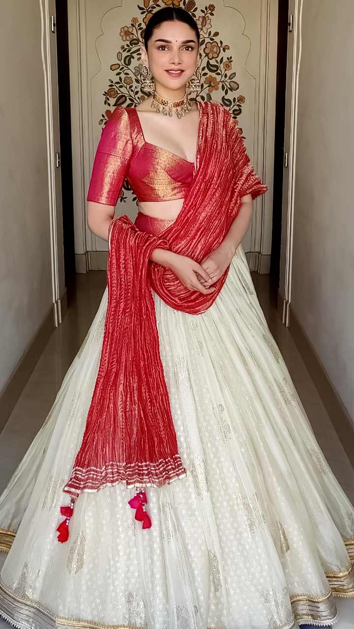 Take a look at Aditi Rao Hydari in classy lehenga sets:-
