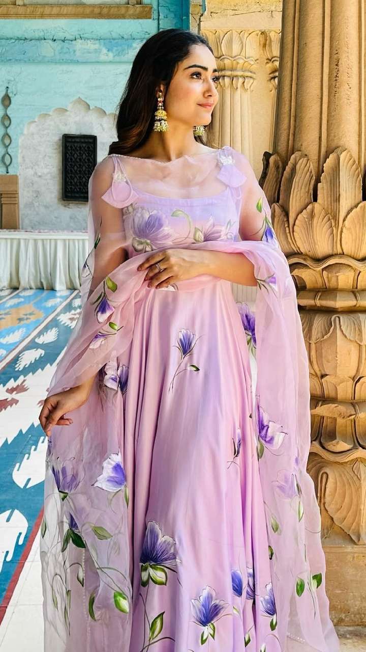 Choudhury dazzled in a soft-hued pink floral-printed floor-length anarkali suit set, which is perfect to steal the spotlight at daytime functions.
