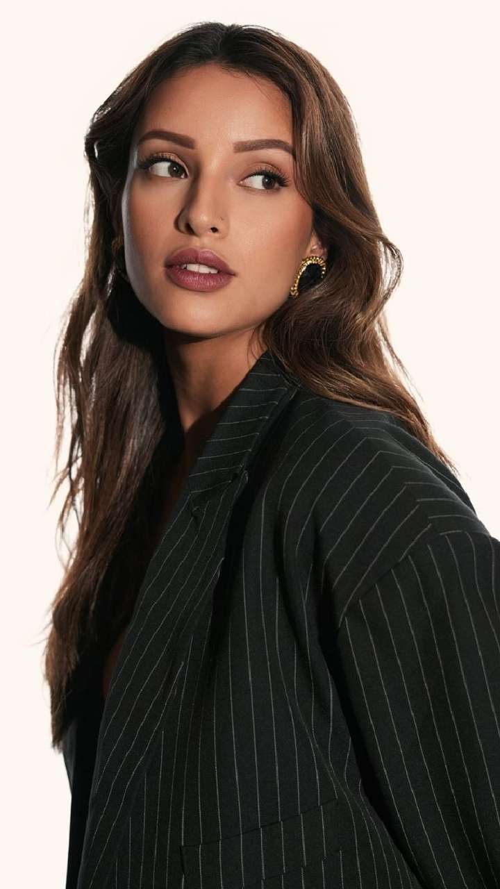 Look effortlessly bold and stunning in the actress’s inspired rust-brown lip shade. To ace the look, you can also opt for chunky jewellery.