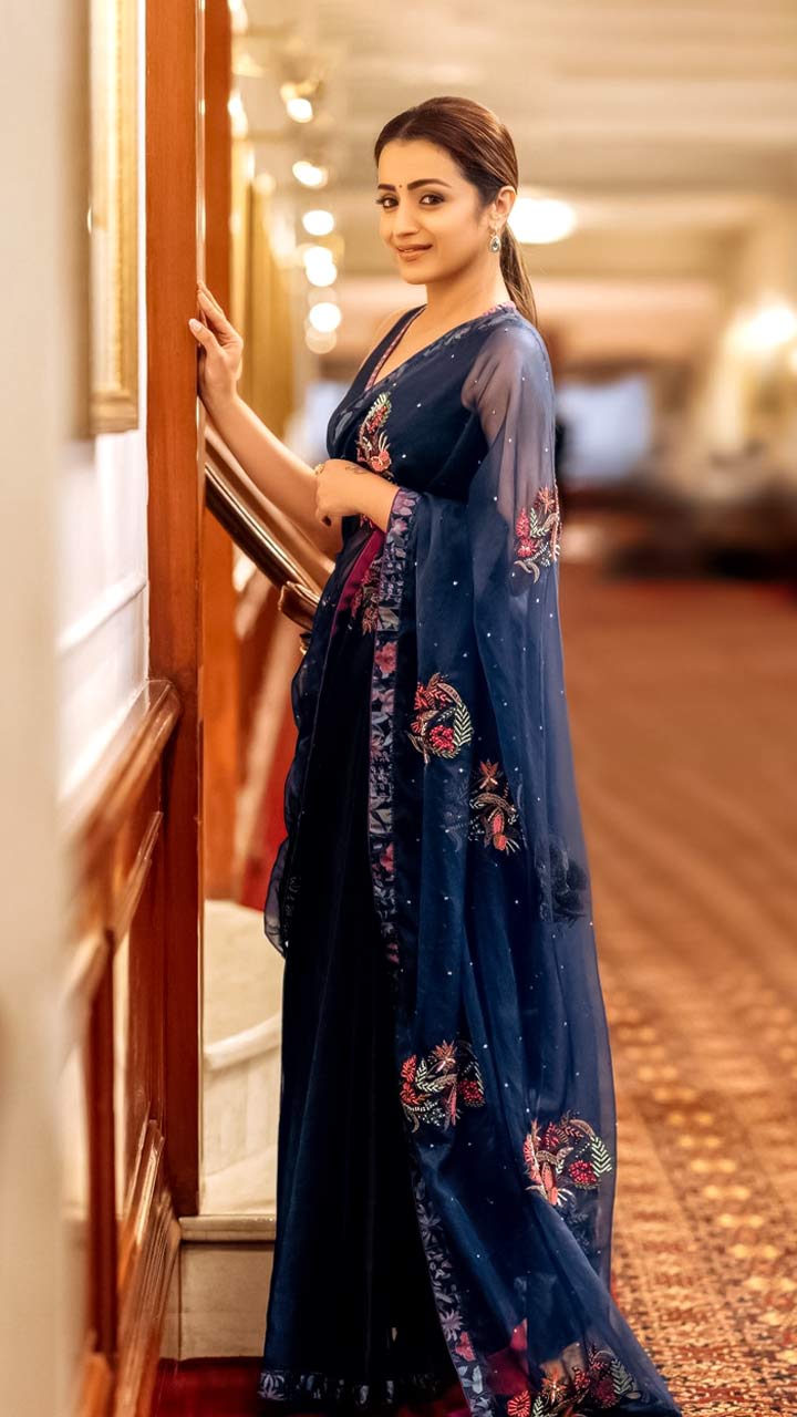 The Ponniyin Selvan - I actor is known for her acting skills and ethnic fashion. She has a superb collection of sarees from which bridesmaids can inspire their closets. Swipe to see.