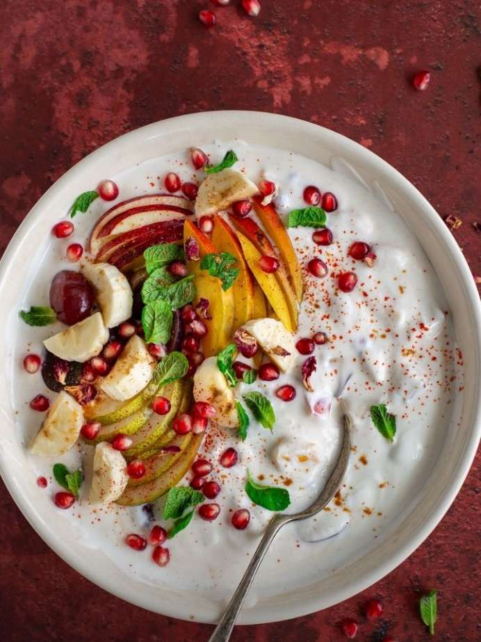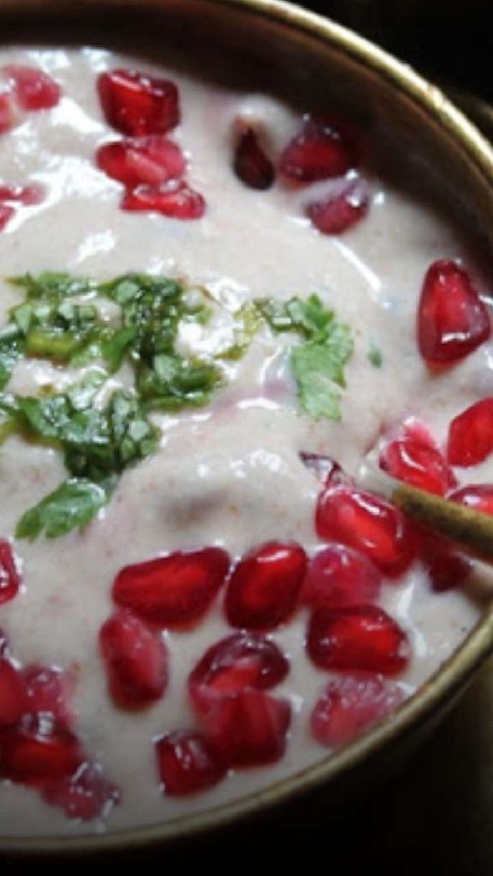 Pomegranate seeds add a refreshing twist to traditional raita. To make pomegranate raita, mix juicy pomegranate with creamy yoghurt and enjoy.