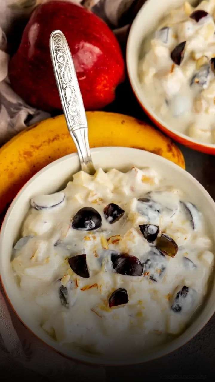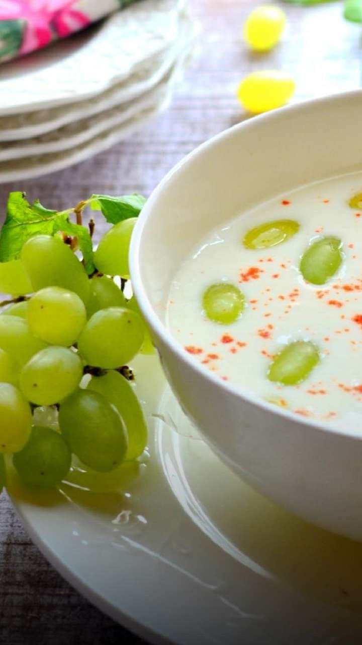 You can prepare grape raita with both black and green grapes. This raita complements hot and spicy dishes like biryani and pulao.
