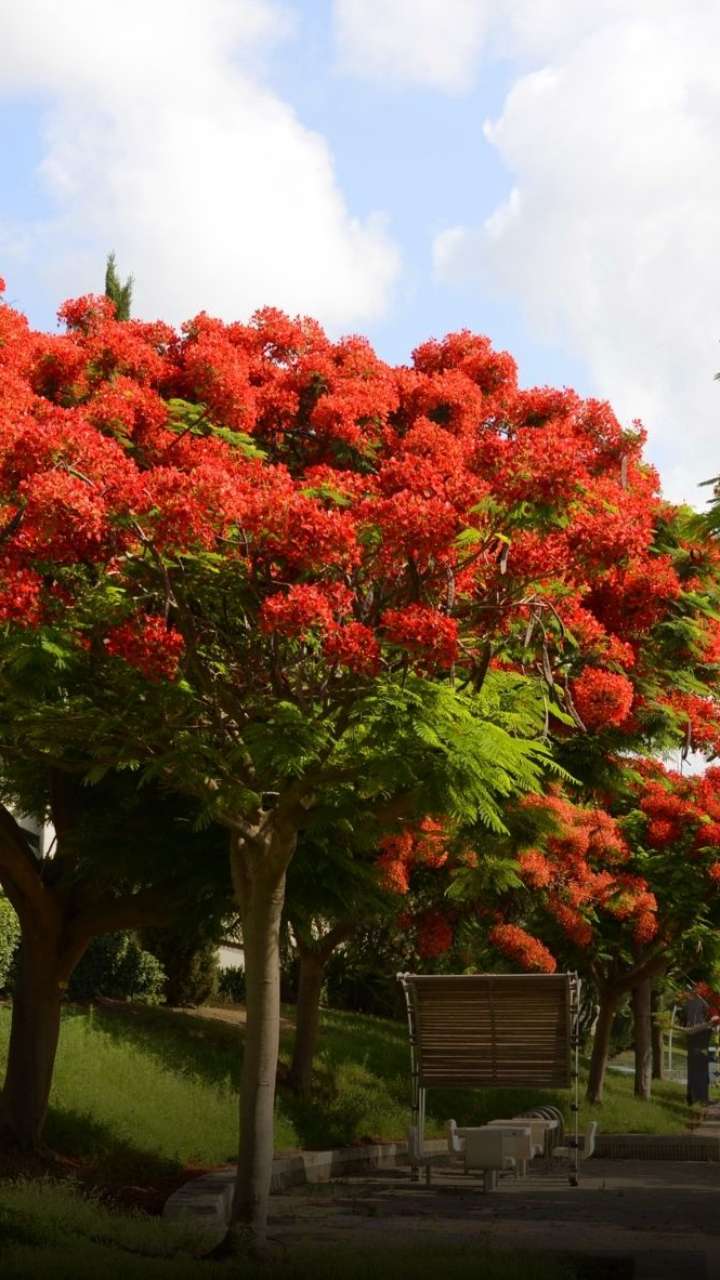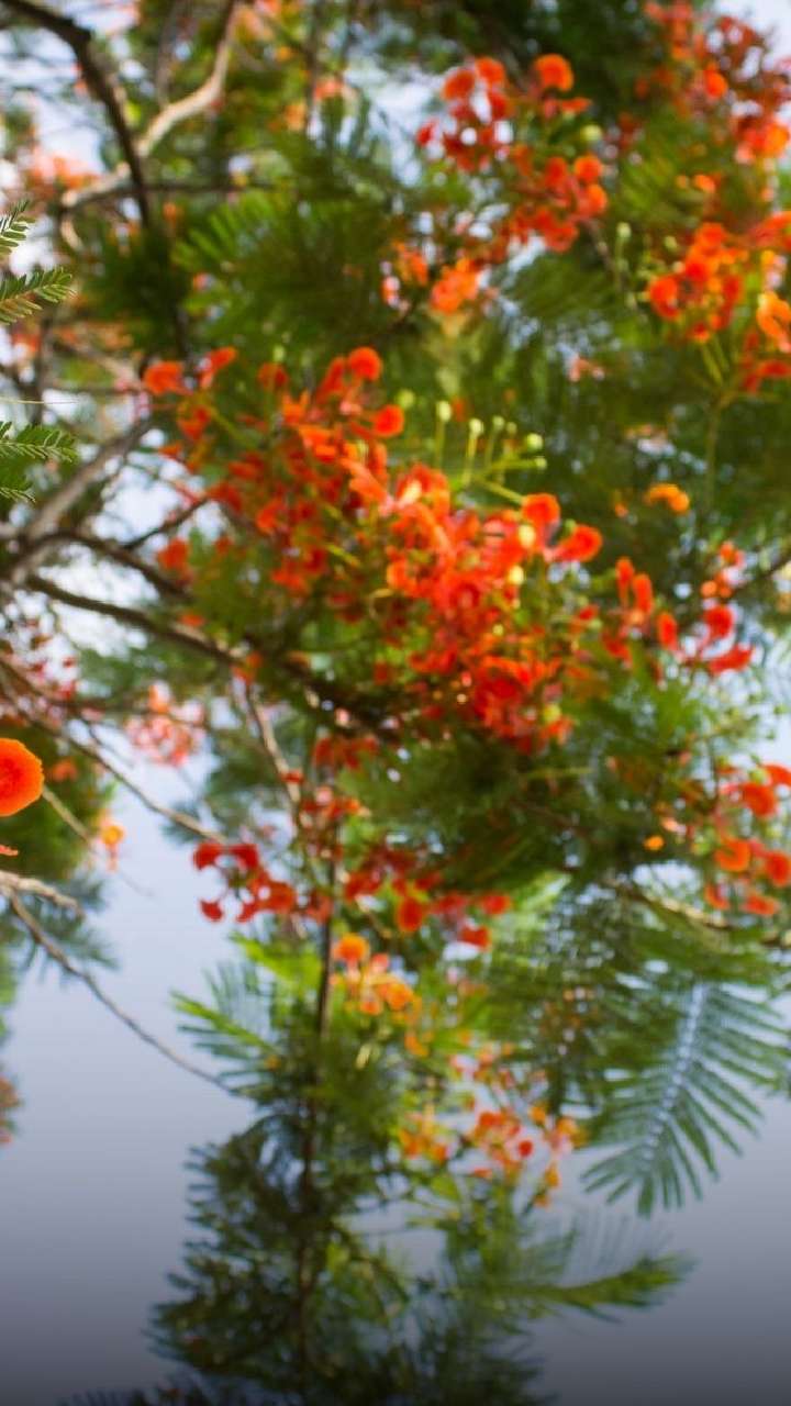 Aesthetically pleasing Gulmohar trees add a touch of calmness and positivity to any landscape with its gorgeous-looking bright red-orange flowers.