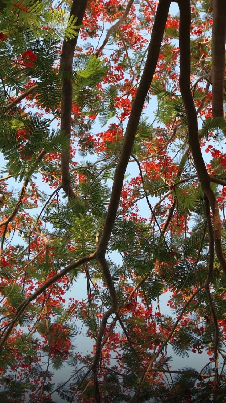 The giant Gulmohar trees provide ample shade, which makes it a perfect tree for parks and roadside plantations.