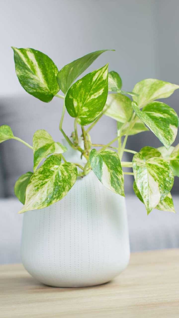 Pothos plants can grow in a variety of light conditions, including low light. Its trailing vines add a nice touch to any space.