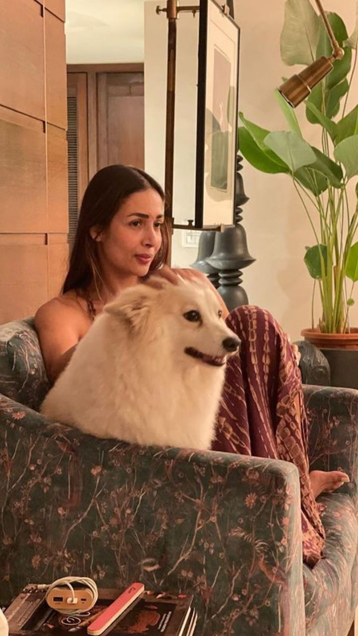 Malaika Arora’s pet pooch Casper is often spotted with her taking walks around the town.