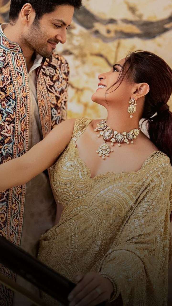 The couple looked beautiful in this photo as Ali could be seen wearing regal attire along with Richa resting her head on his shoulder.