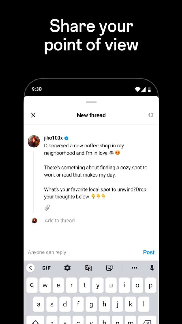The users can share text updates and join public discussions. They can also create posts with up to 500 characters, links, up to 10 photos, and videos up to 5 minutes long.