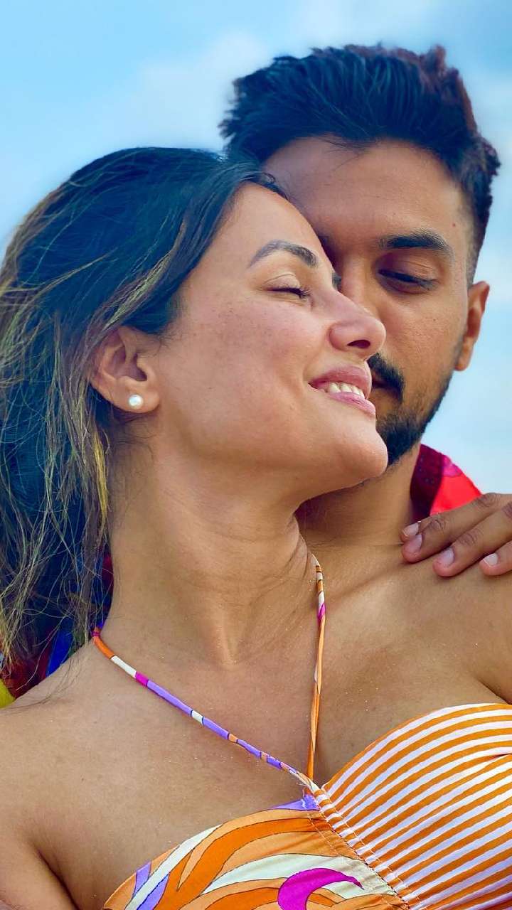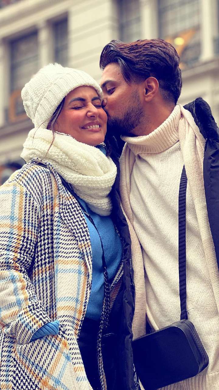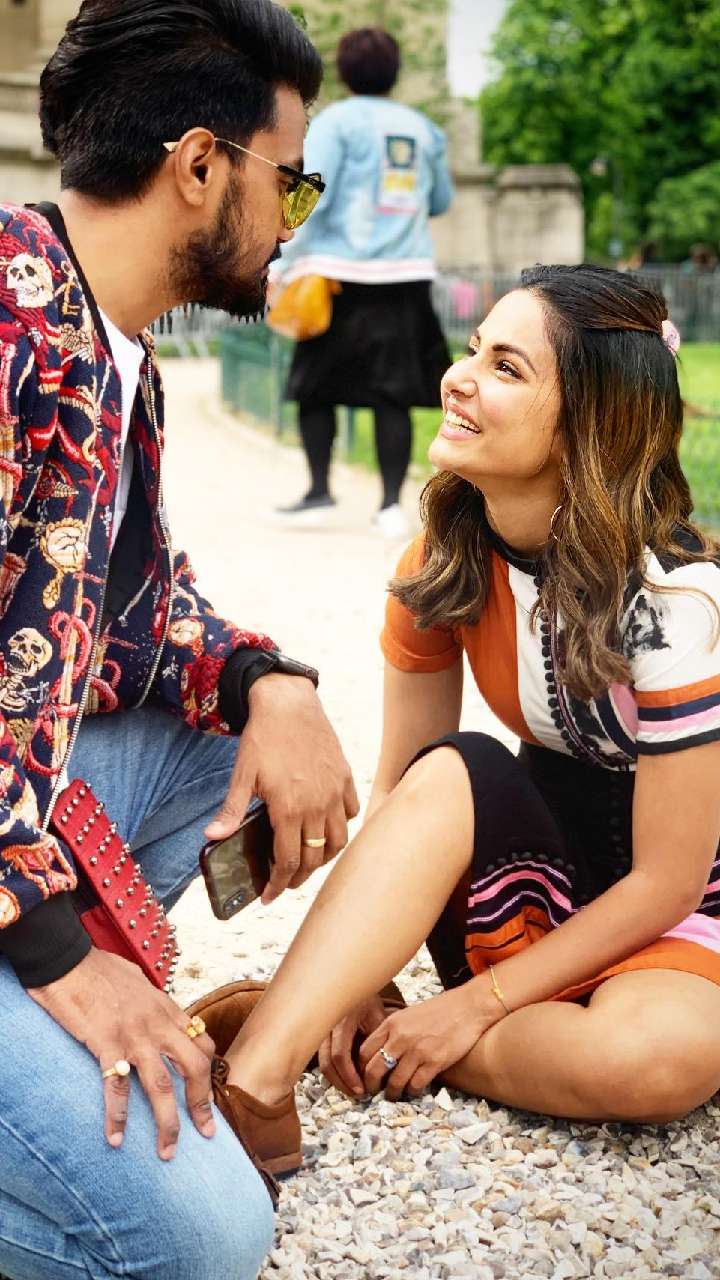 The popular television actress, Hina Khan, is battling a life-threatening disease. However, one thing that stayed rock solid through all this is her relationship with her beau Rocky Jaiswal. Tap to see.